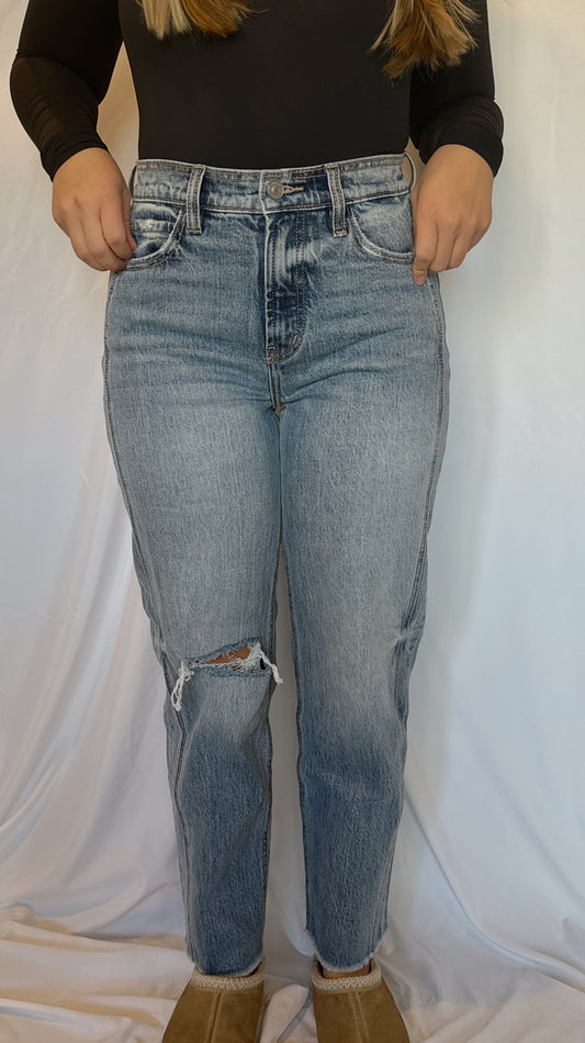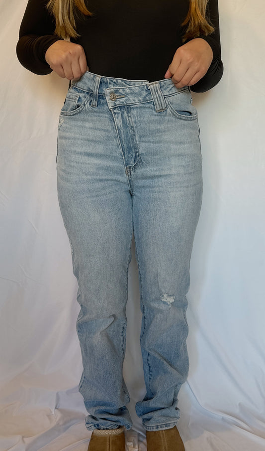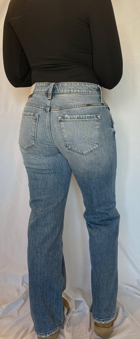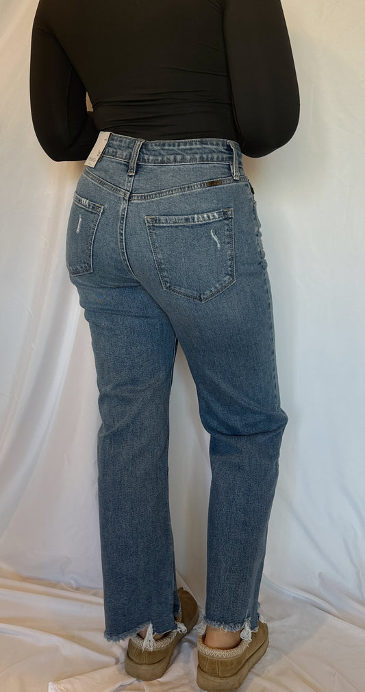 Kancan Mid Rise Frayed Hem Straight Jeans
