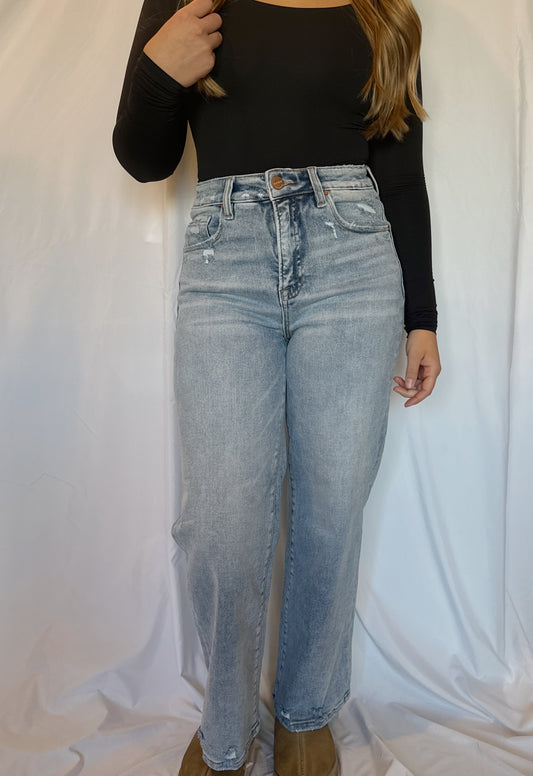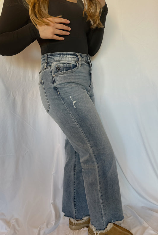 RISEN Full Size Tummy Control High Rise Crop Wide Leg Jeans
