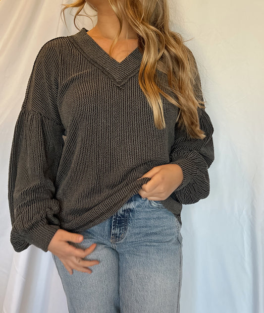 Olivia Ribbed V-Neck Exposed Seam Top